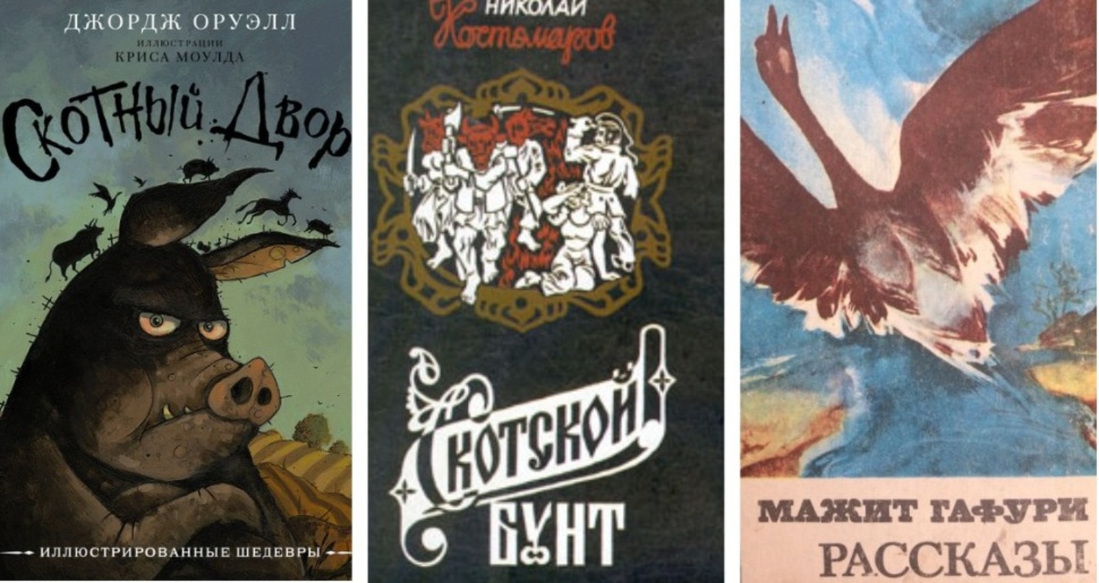 О жизни животных, воплощающих человеческие страсти, добродетели и пороки, писали еще в древние века, не говоря об авторах нового и новейшего времени. Басни, притчи, сказки, фантазии, сатиры и утопии о людях в животном обличии создавали Эзоп, Федр, Бабрий, Жан Лафонтен, Джонатан Свифт, Иван Андреевич Крылов и тысячи других именитых и безымянных творцов. Но в жанре антиутопии «воспевали» братьев наших меньших лишь немногие. Среди них Николай Костомаров, Мажит Гафури и Джордж Оруэлл.