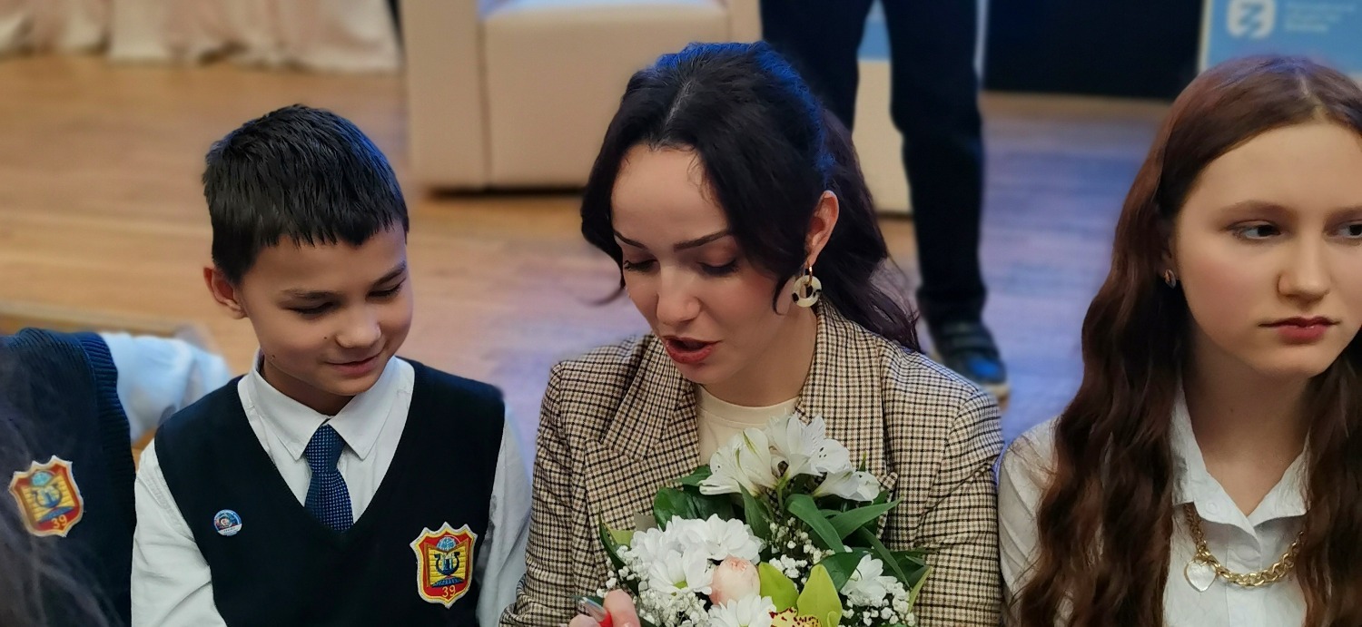 Валерия Ланская провела импровизированный мастер-класс, используя отрывки из рассказов В.Ю. Драгунского «Тайное становится явным» и И.А. Бунина «Заря всю ночь». Она поделилась профессиональными секретами: важно обращать внимание на интонацию и осознанно доносить текст до слушателя. Совместная читка гимназистов и актрисы прошла успешно: ребята показали выразительное чтение, а Валерия Ланская дала им советы, как с помощью интонации и пауз передать содержание текста.