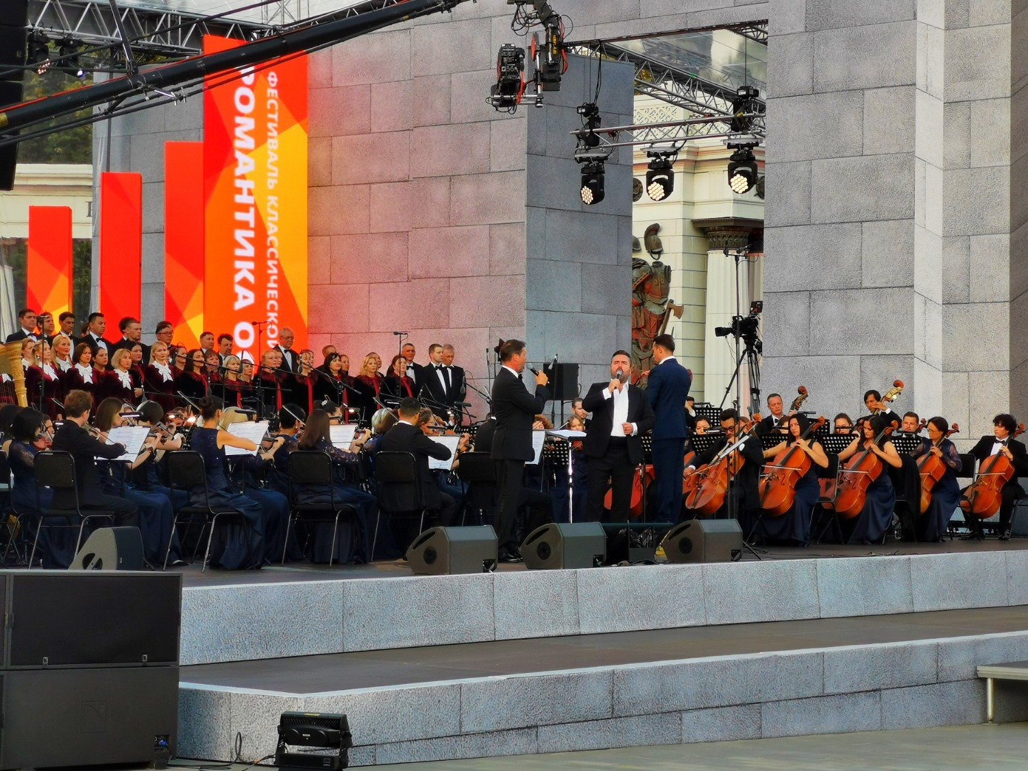 Солисты фестиваля поделились своими впечатлениями. Василий Ладюк восхитился масштабом мероприятия и замечательной погодой. Аскар Абдразаков акцентировал внимание на вечной ценности военных песен, которые остаются актуальными и сегодня. Оксана Волкова из Беларуси рассказала о трепетном отношении к военной теме и упомянула вклад Дмитрия Хворостовского в популяризацию этих произведений.