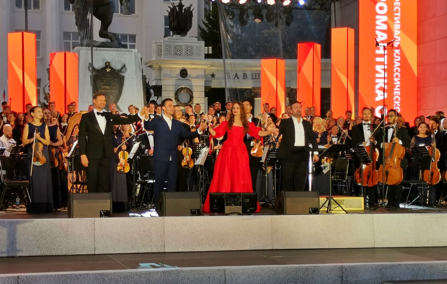 И наконец, уникальный фестиваль классической музыки «Романтика осени», организованный в рамках Дней армейской культуры сразу начался после Парада флагов. Мероприятие, посвященное 80-летию Победы в Великой Отечественной войне, прошло на Советской площади Уфы.