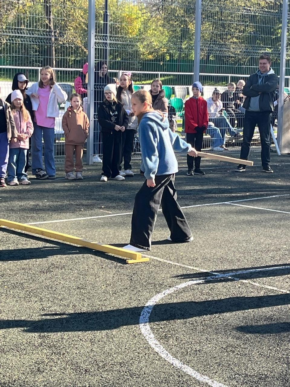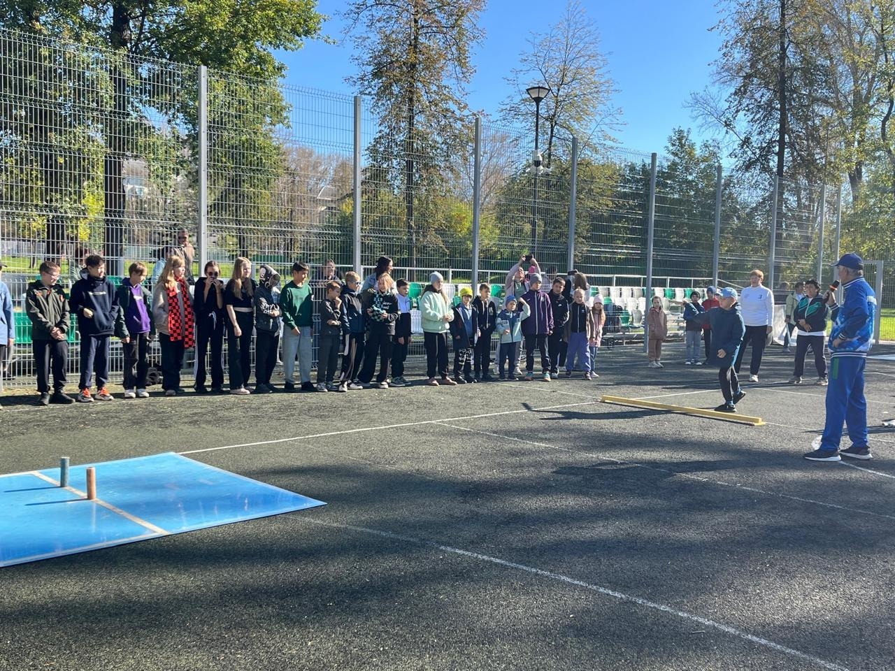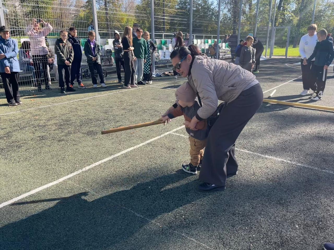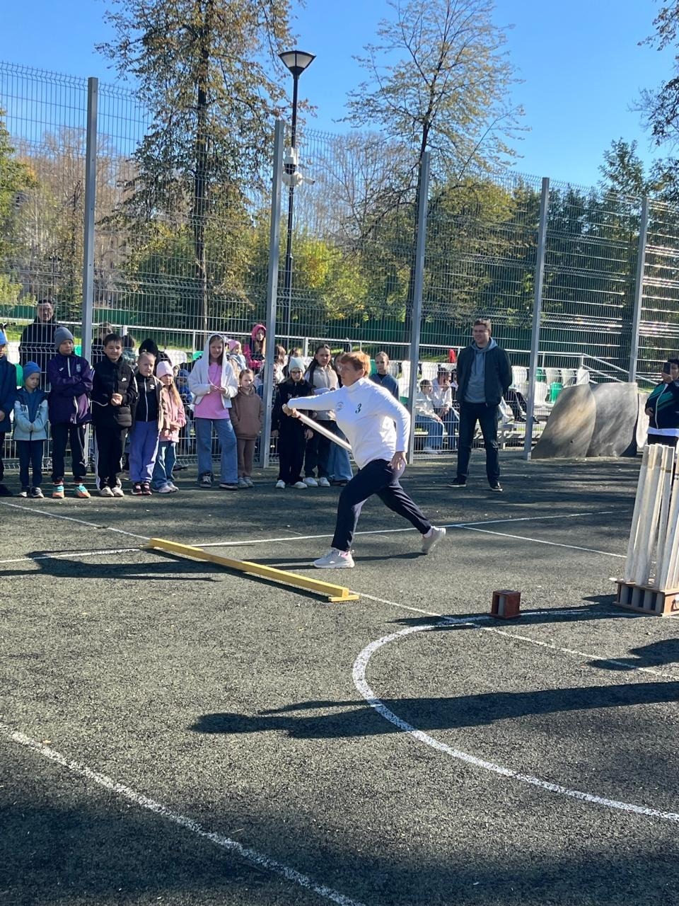 Желающих попробовать свои силы в бросках биты было много. Для детворы, впервые столкнувшейся с городками на открытом мастер-классе, этот вид спорта вызывает неподдельный интерес - появляется непреодолимое желание попасть и выбить как можно больше фигур. Невольно сравниваешь городки с боулингом, когда в дружной компании кто-то выбивает страйк. Азарт чувствовался не только среди участников мастер-класса, но и среди болельщиков! А среди зрителей были и одноклассники, и учителя, и родители.
