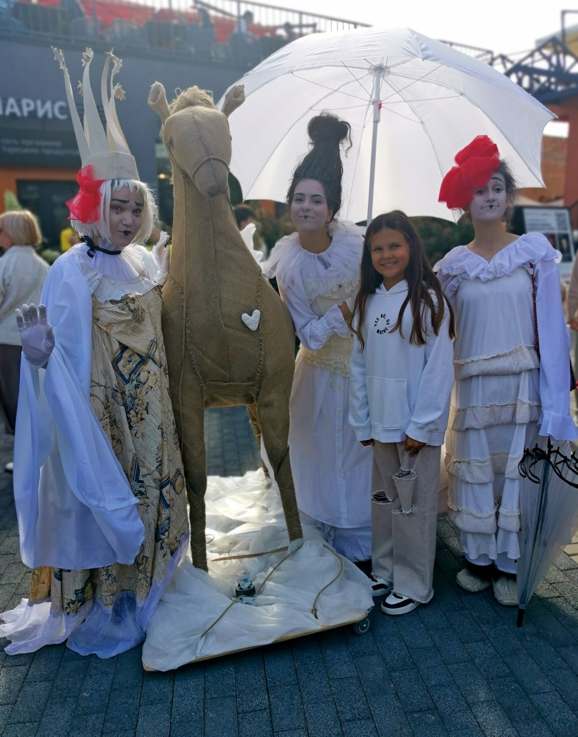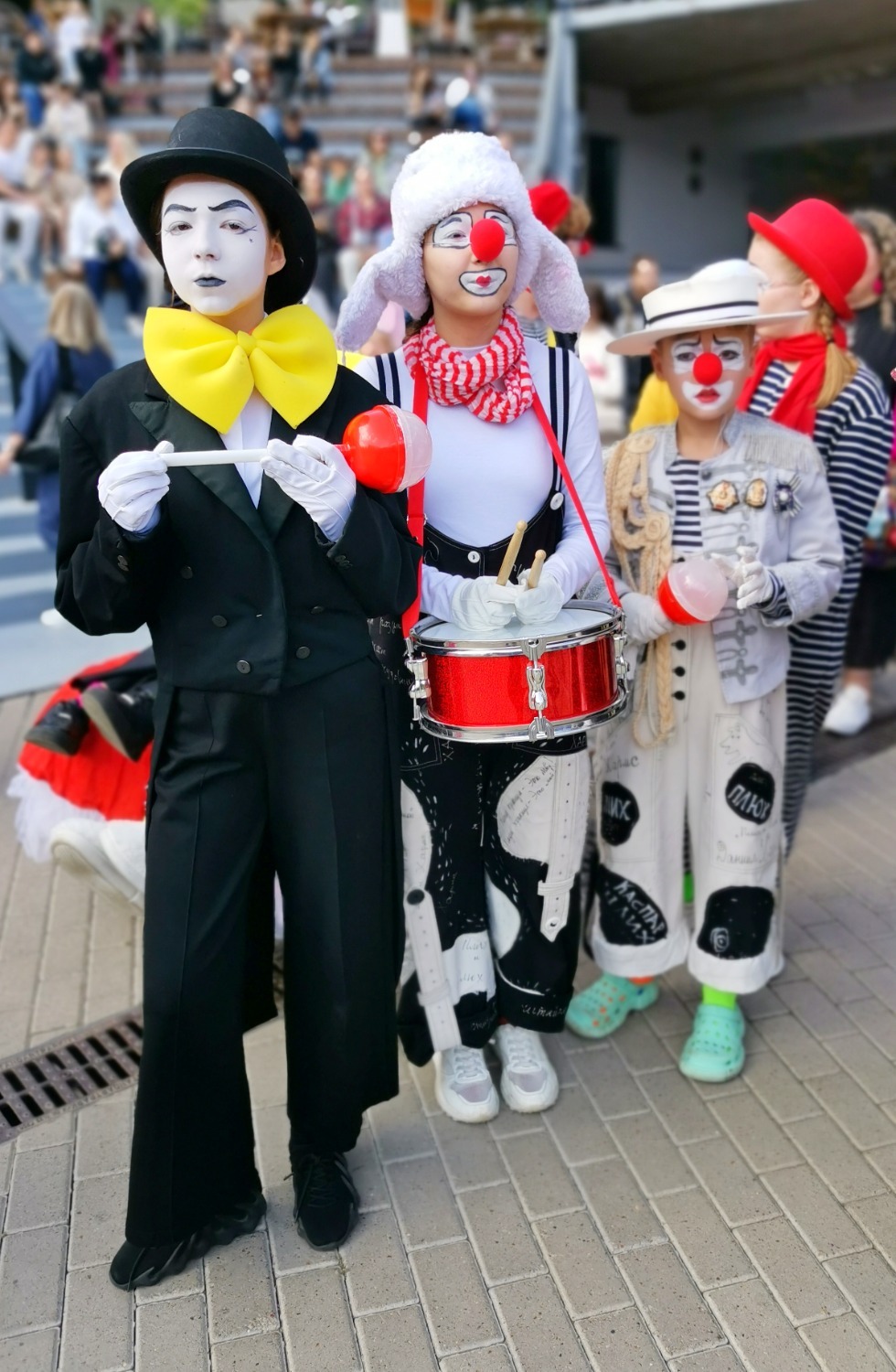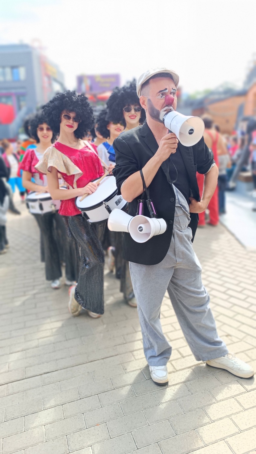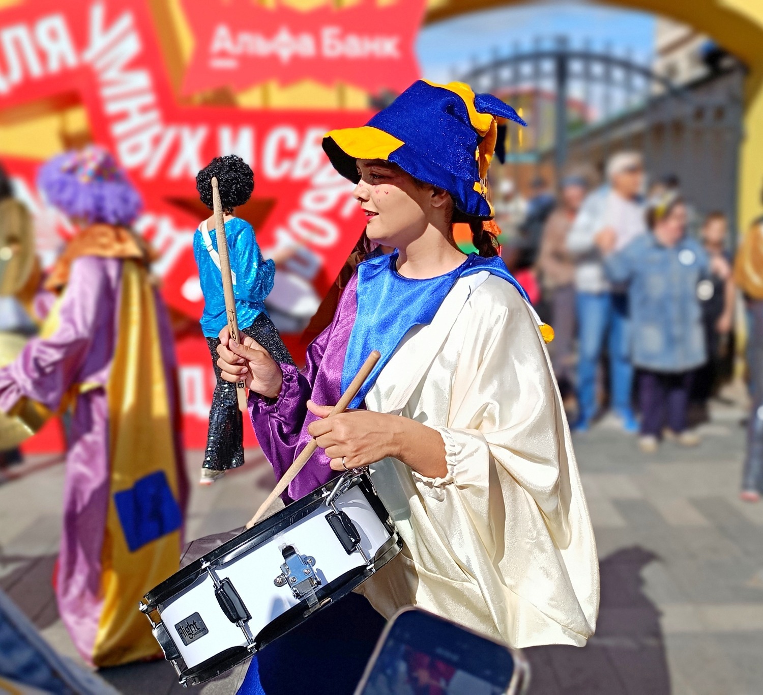 Вчера и сегодня, так сказать, идёт... шёл фестиваль уличных театров. Гип-гоп, ура! Вчера, уже не сегодня, прошло карнавальное, театральное шествие вокруг "Арт-квадрата". Как обычно, как всегда. Автомобили, проезжающие по проезжей части, шарахались в сторону, подальше от праздничной толпы. Не дай бог, кто заденет, помнёт, погнёт их... А толпа ликовала, смеялась от души, танцевала ламбаду, лезгинку и прочие зажигательные танцы. Клоуны, артистичные личности лезли в обнимашки, будто друга родного встретили. Одни словом, это нечто зубодробильное, сногшибательное, сверхфееричное и крышесносное. И спектакли душевные, пронзительные. Театр уличный жив и живее всех! Ур-р-а-а-а!
