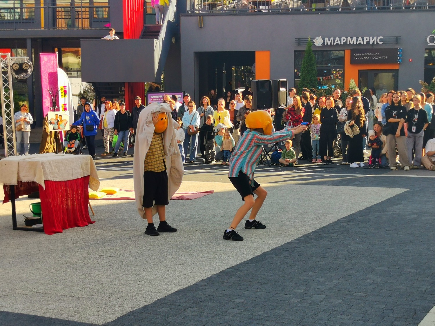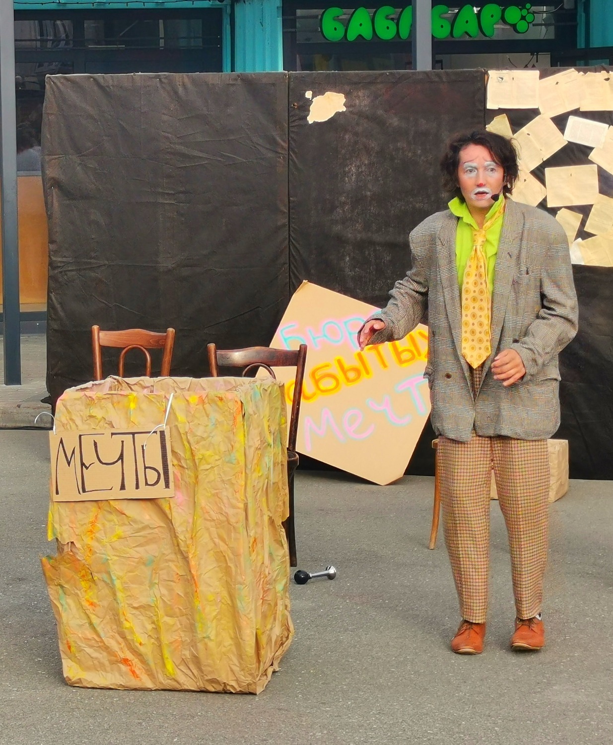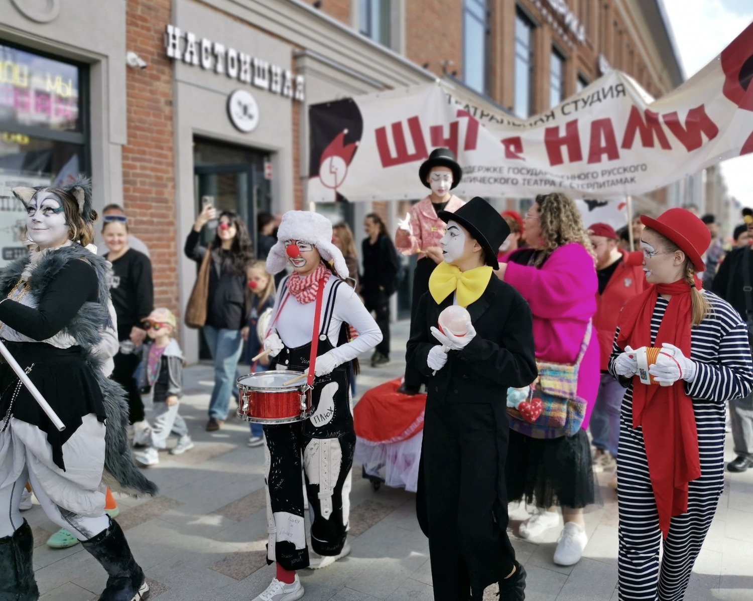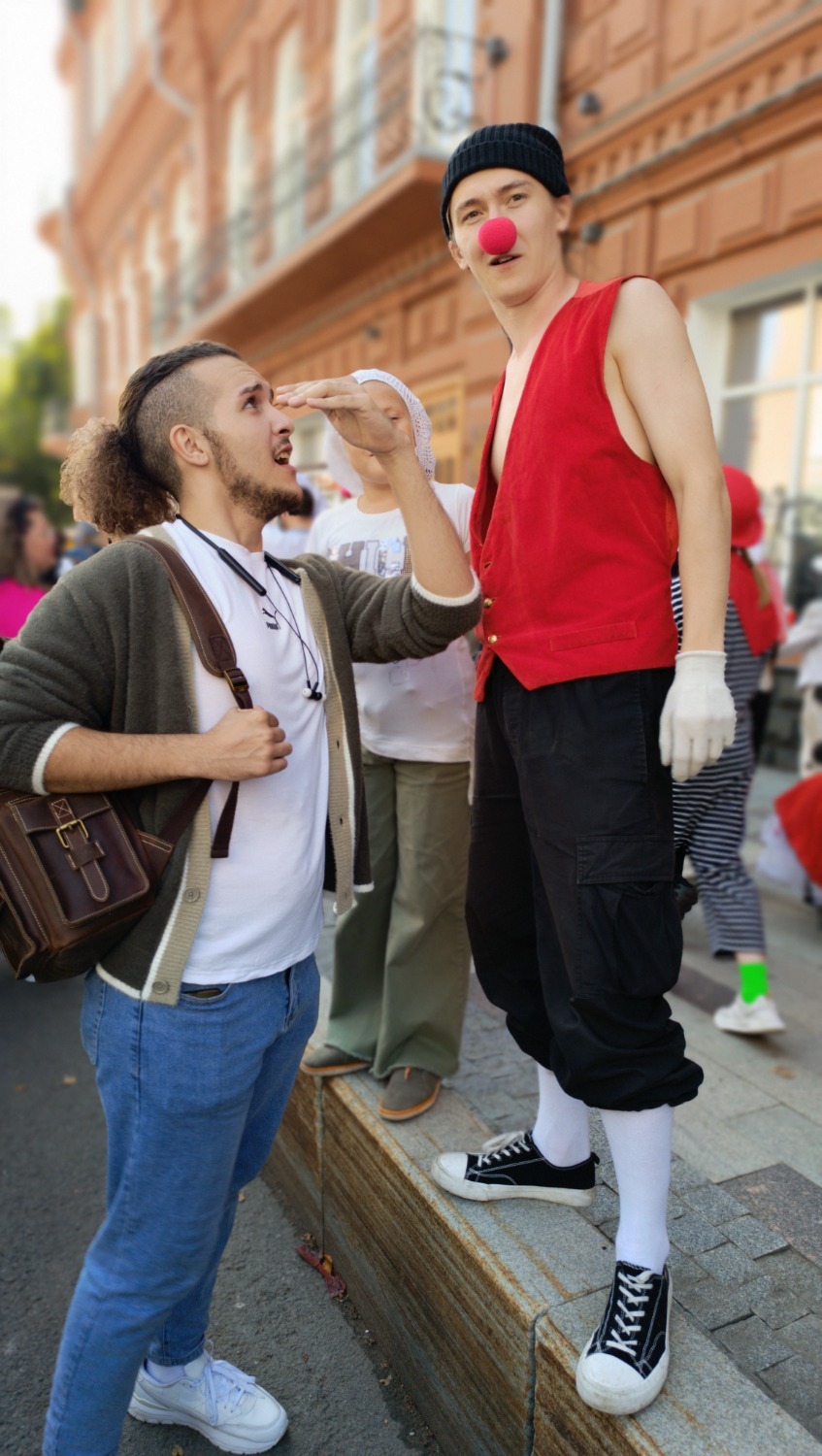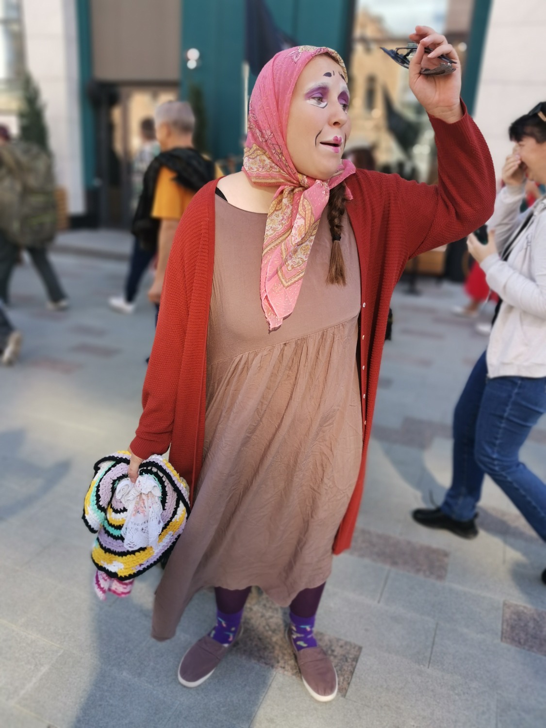 Вчера и сегодня, так сказать, идёт... шёл фестиваль уличных театров. Гип-гоп, ура! Вчера, уже не сегодня, прошло карнавальное, театральное шествие вокруг "Арт-квадрата". Как обычно, как всегда. Автомобили, проезжающие по проезжей части, шарахались в сторону, подальше от праздничной толпы. Не дай бог, кто заденет, помнёт, погнёт их... А толпа ликовала, смеялась от души, танцевала ламбаду, лезгинку и прочие зажигательные танцы. Клоуны, артистичные личности лезли в обнимашки, будто друга родного встретили. Одни словом, это нечто зубодробильное, сногшибательное, сверхфееричное и крышесносное. И спектакли душевные, пронзительные. Театр уличный жив и живее всех! Ур-р-а-а-а!