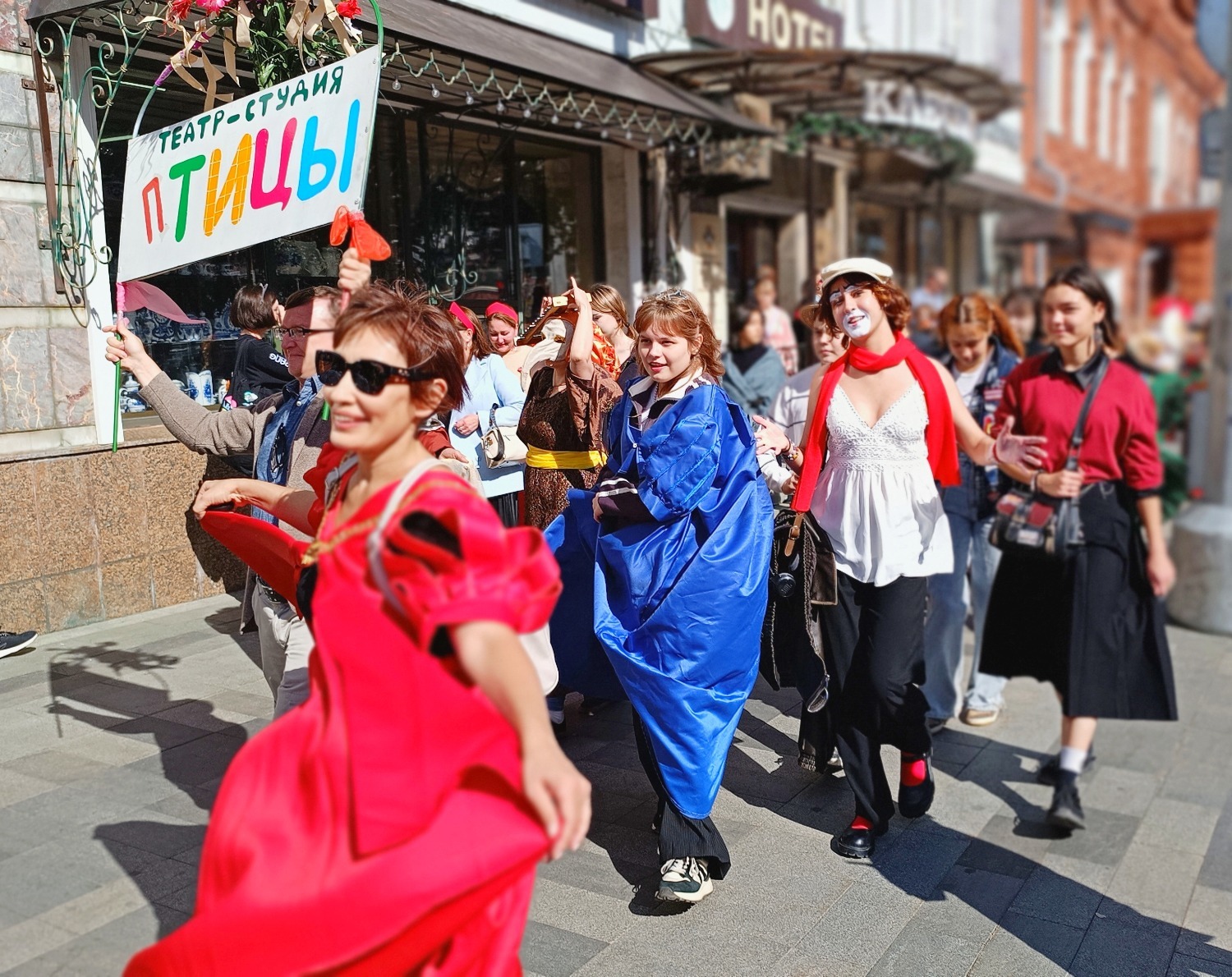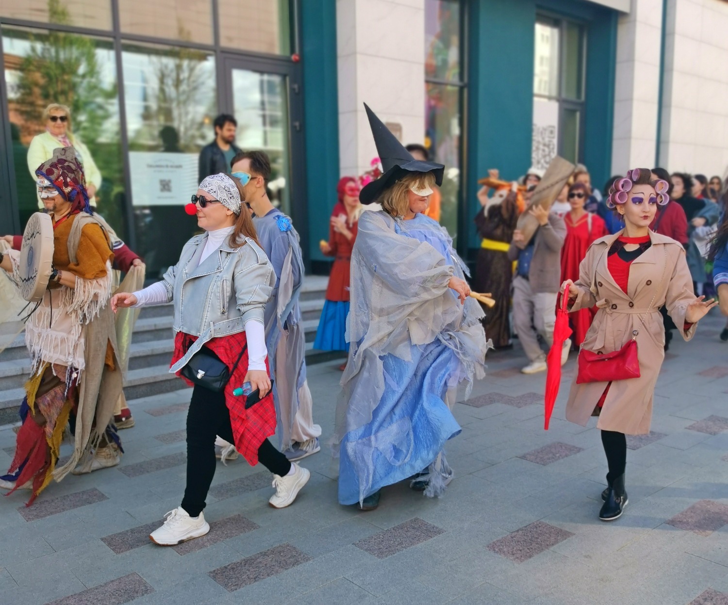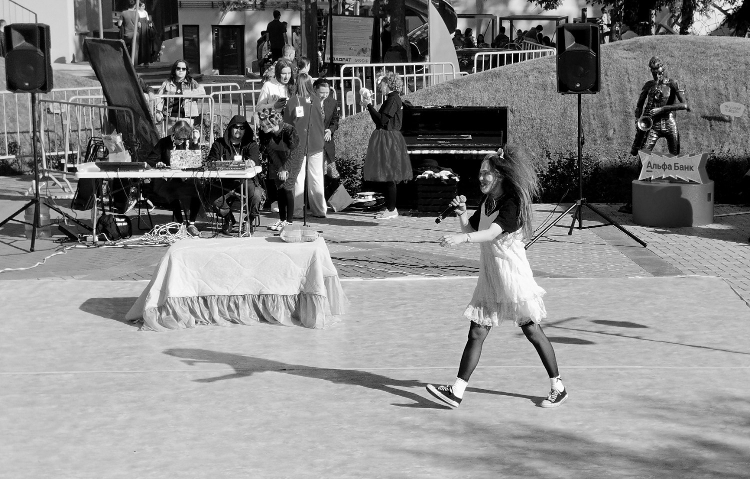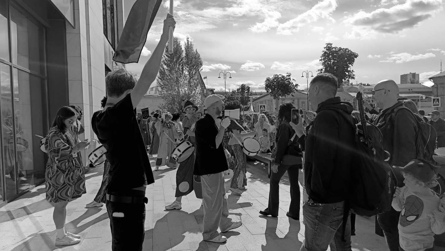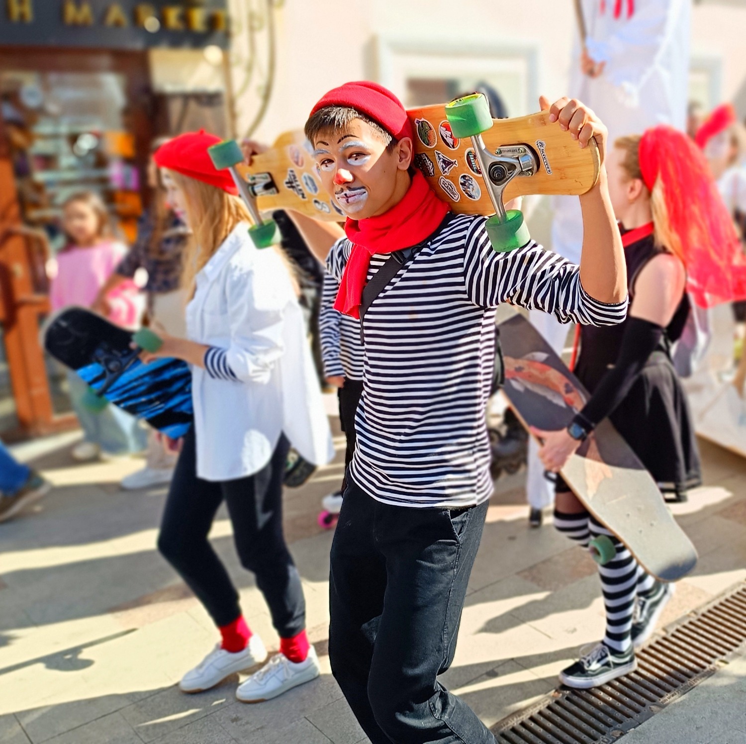 Вчера и сегодня, так сказать, идёт... шёл фестиваль уличных театров. Гип-гоп, ура! Вчера, уже не сегодня, прошло карнавальное, театральное шествие вокруг "Арт-квадрата". Как обычно, как всегда. Автомобили, проезжающие по проезжей части, шарахались в сторону, подальше от праздничной толпы. Не дай бог, кто заденет, помнёт, погнёт их... А толпа ликовала, смеялась от души, танцевала ламбаду, лезгинку и прочие зажигательные танцы. Клоуны, артистичные личности лезли в обнимашки, будто друга родного встретили. Одни словом, это нечто зубодробильное, сногшибательное, сверхфееричное и крышесносное. И спектакли душевные, пронзительные. Театр уличный жив и живее всех! Ур-р-а-а-а!