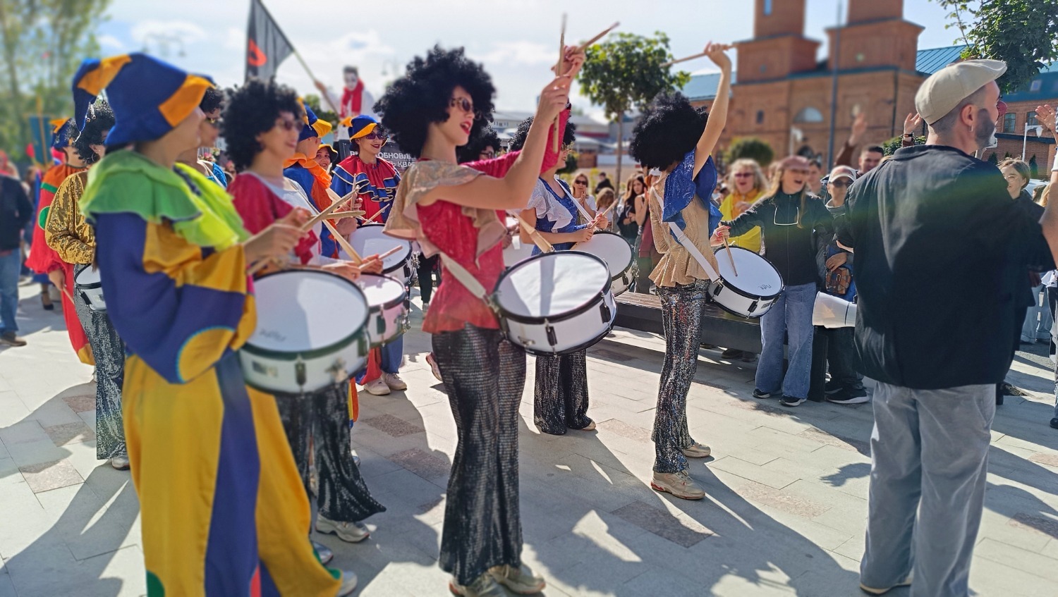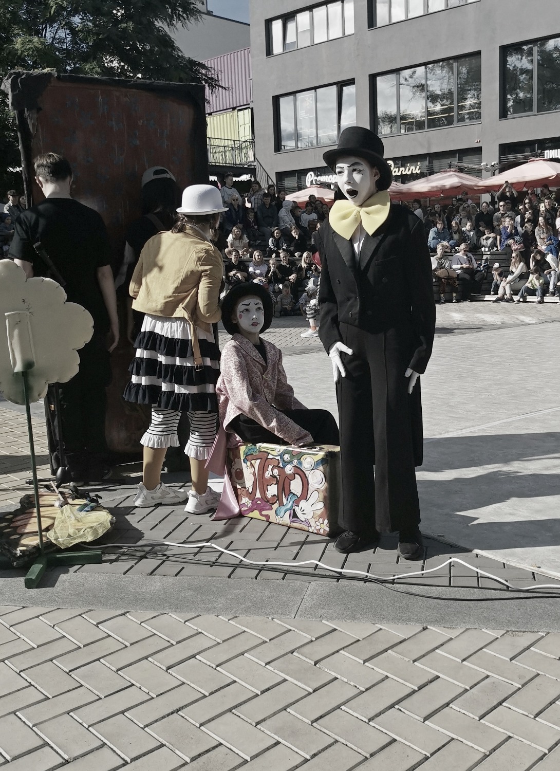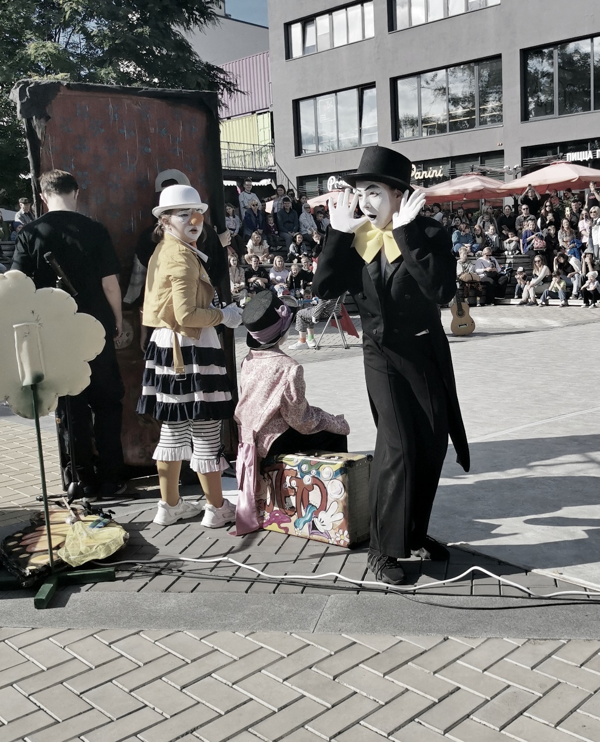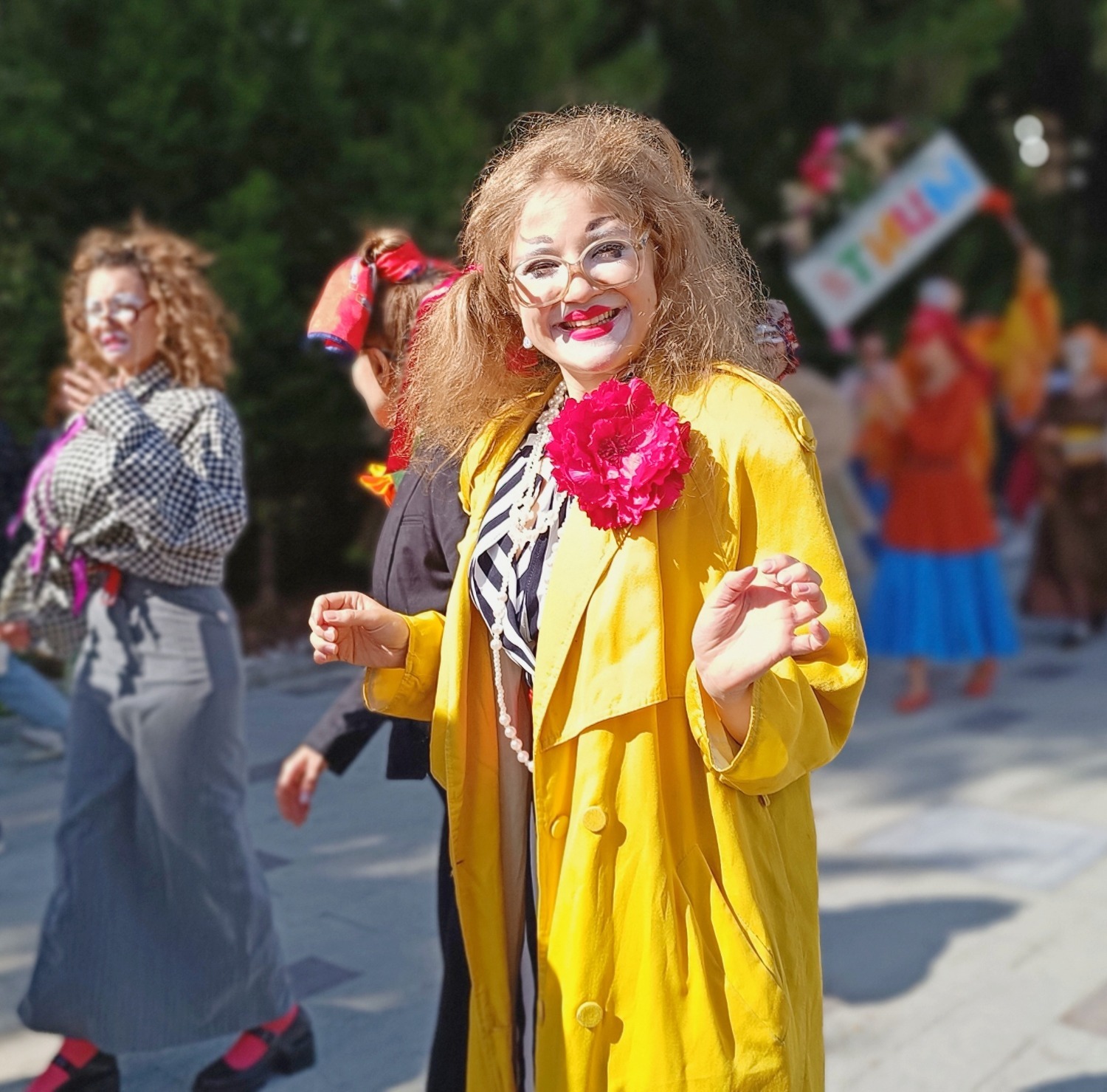 Вчера и сегодня, так сказать, идёт... шёл фестиваль уличных театров. Гип-гоп, ура! Вчера, уже не сегодня, прошло карнавальное, театральное шествие вокруг "Арт-квадрата". Как обычно, как всегда. Автомобили, проезжающие по проезжей части, шарахались в сторону, подальше от праздничной толпы. Не дай бог, кто заденет, помнёт, погнёт их... А толпа ликовала, смеялась от души, танцевала ламбаду, лезгинку и прочие зажигательные танцы. Клоуны, артистичные личности лезли в обнимашки, будто друга родного встретили. Одни словом, это нечто зубодробильное, сногшибательное, сверхфееричное и крышесносное. И спектакли душевные, пронзительные. Театр уличный жив и живее всех! Ур-р-а-а-а!