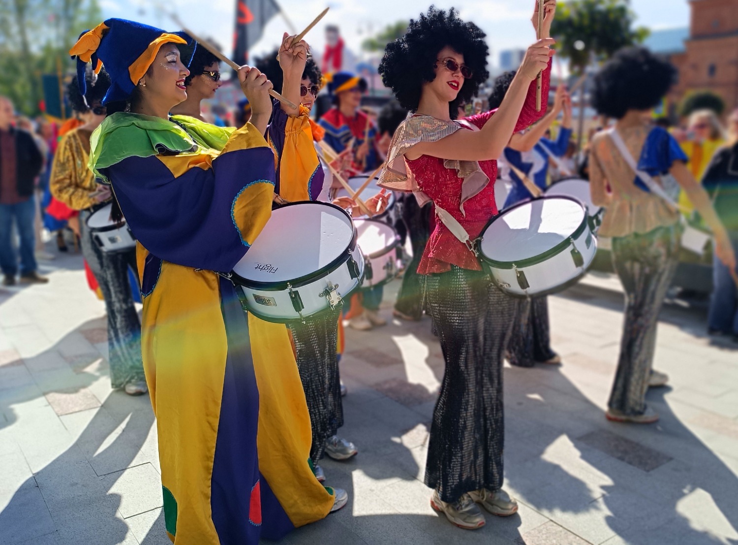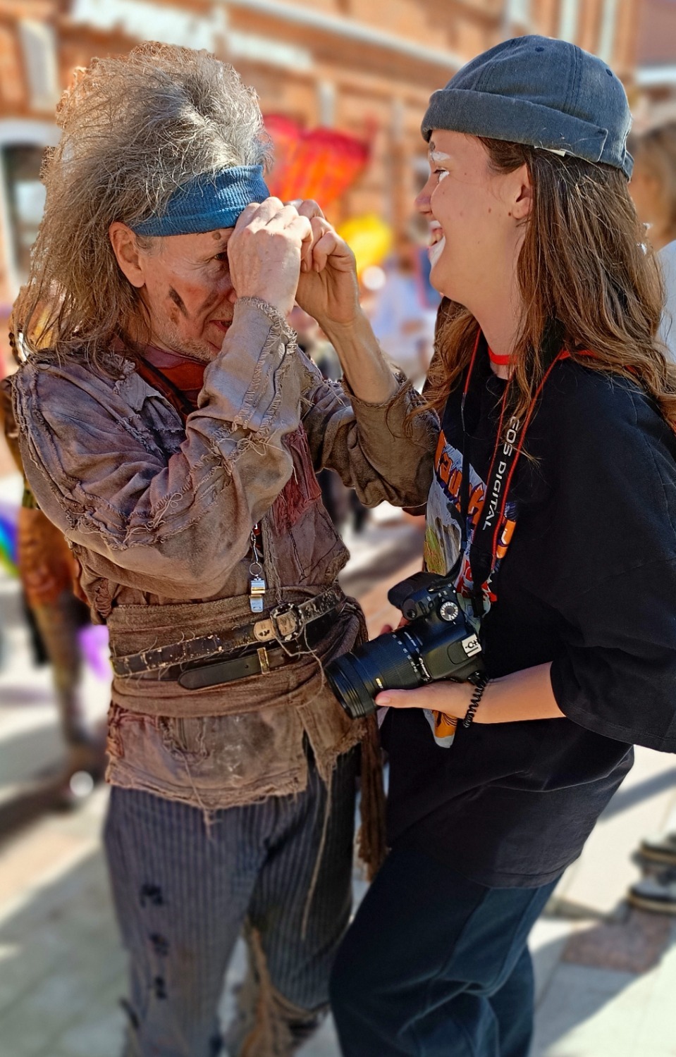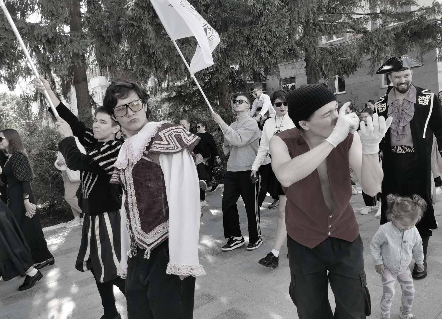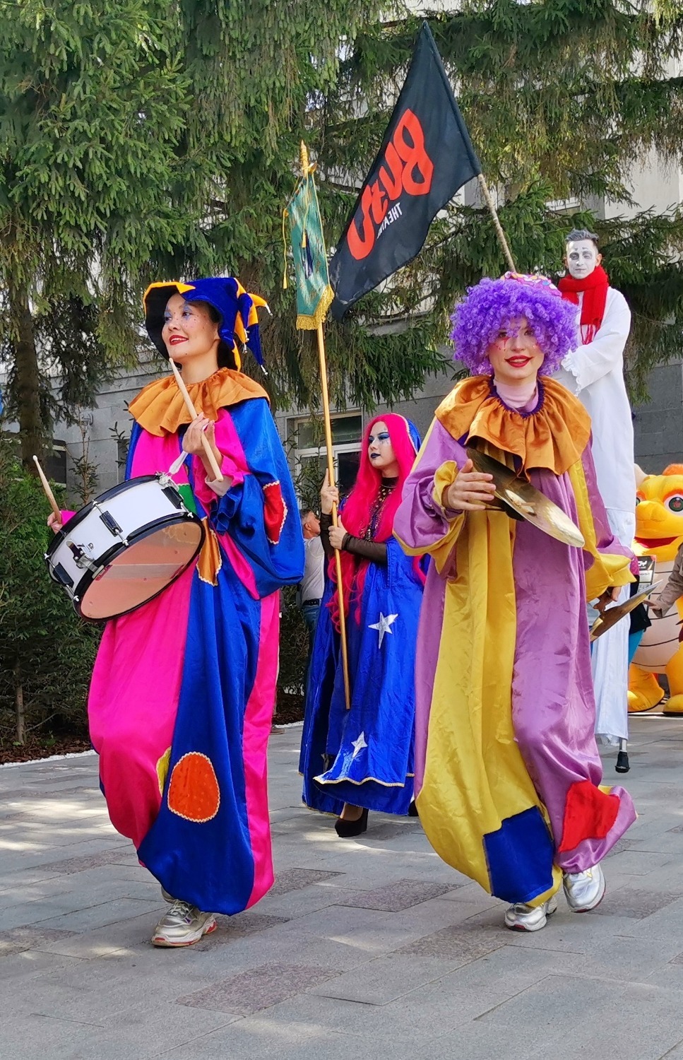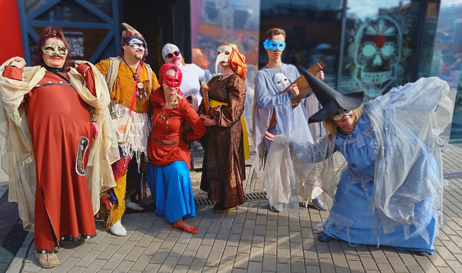 Вчера и сегодня, так сказать, идёт... шёл фестиваль уличных театров. Гип-гоп, ура! Вчера, уже не сегодня, прошло карнавальное, театральное шествие вокруг "Арт-квадрата". Как обычно, как всегда. Автомобили, проезжающие по проезжей части, шарахались в сторону, подальше от праздничной толпы. Не дай бог, кто заденет, помнёт, погнёт их... А толпа ликовала, смеялась от души, танцевала ламбаду, лезгинку и прочие зажигательные танцы. Клоуны, артистичные личности лезли в обнимашки, будто друга родного встретили. Одни словом, это нечто зубодробильное, сногшибательное, сверхфееричное и крышесносное. И спектакли душевные, пронзительные. Театр уличный жив и живее всех! Ур-р-а-а-а!