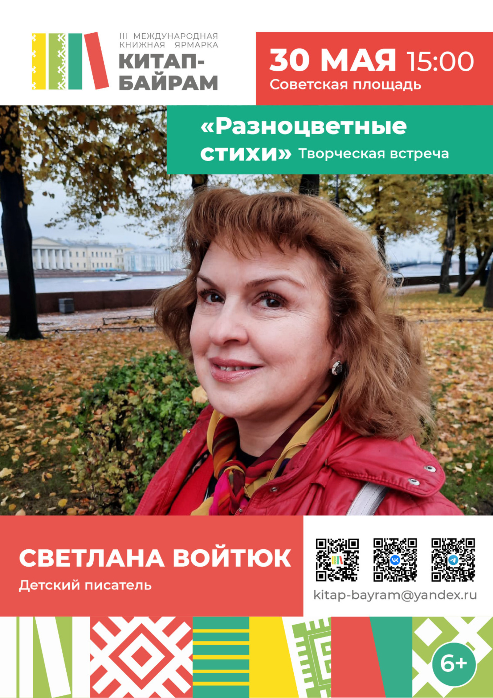 Далее эстафету примут детская писательница Светлана Войтюк, поэт Римма Романова проведёт презентацию своей новой книги, а встречу с улыбкой подарит писатель-юморист Леонид Соколов. Вместе с Любовью Колоколовой зрители окажутся под созвездием Любви, а песни и стихи Николая Грахова непременно проявят в душах пришедших на ярмарку приятные чувства. Следом для детей и взрослых выступит Светлана Панасенко, а затем Александр Андриенко представит свою книгу.