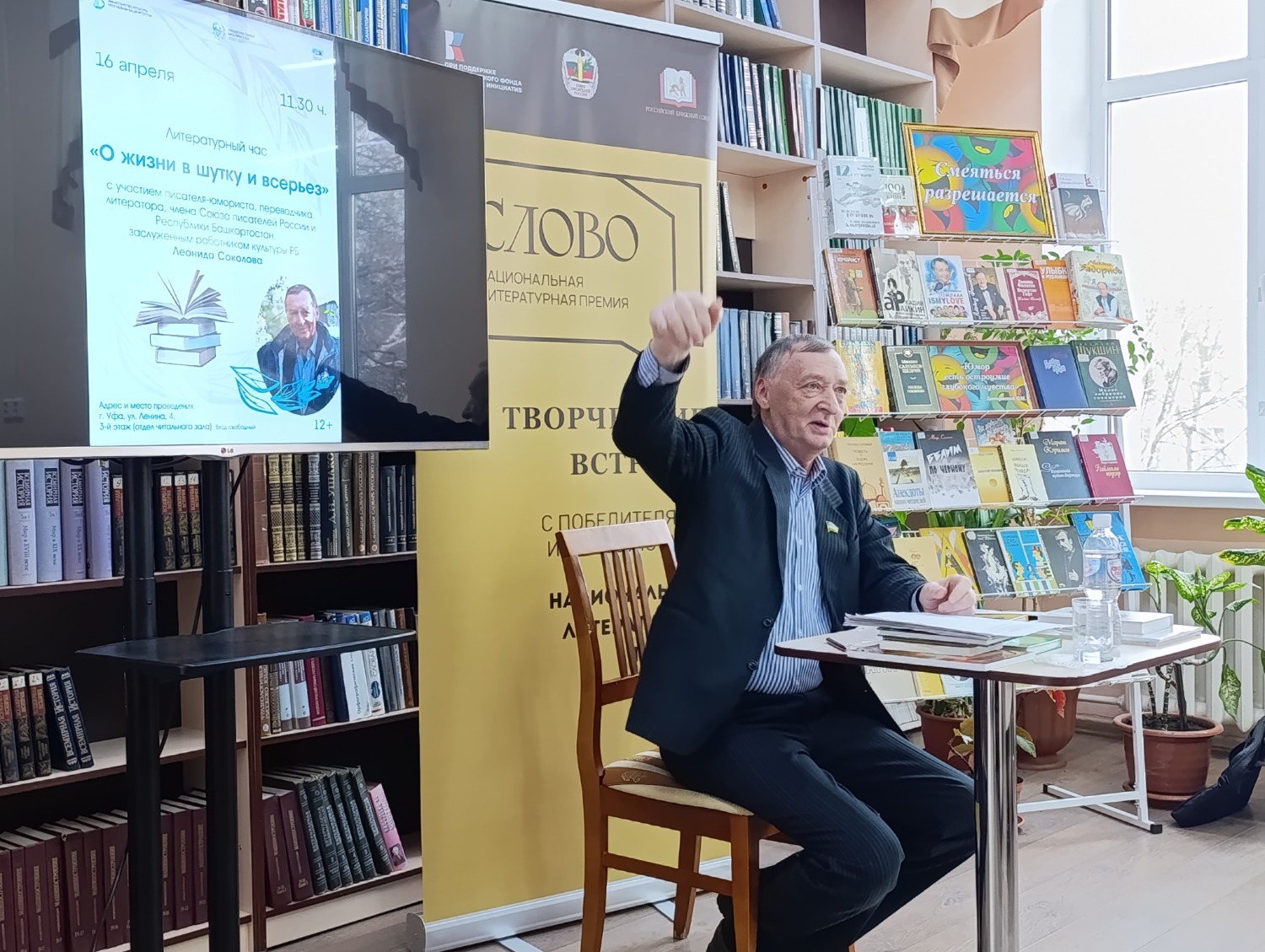 16 апреля в Национальной библиотеке г. Уфы в рамках мероприятий Национальной литературной премии «Слово» прошла творческая встреча с писателем, юмористом, финалистом Национальной литературной премии «Слово» в номинации «Перевод» Леонидом Соколовым.