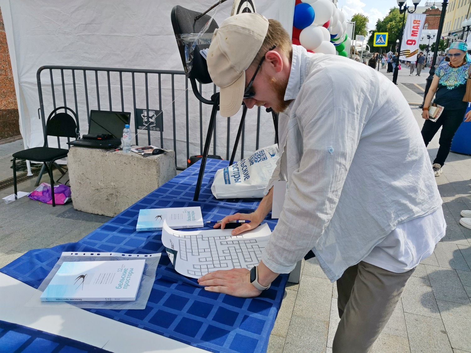 Сегодня редакция журнала «Бельские просторы» в шатре Дома печати порадовала посетителей кроссвордами. Особенно запомнился участникам кроссворд по стихотворениям детского писателя и поэта Сергея Михалкова. И также был полюбившийся всем дартс, без него не обошлось. Вновь свистели пули, то есть дротики, что попадали прямо в цель. За удачные выстрелы-броски победители получали призы.
